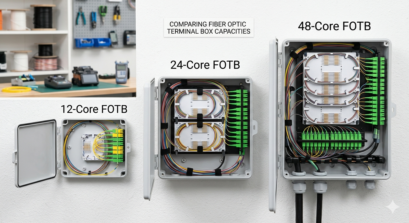 Om de ideale capaciteit te bepalen voor een Glasvezelaansluitdoos (FOTB) , moet u het aantal vezels overeenkomen, ongeacht of 12-core, 24-core of 48-core —aan uw huidige actieve abonneedichtheid, terwijl u rekening houdt met een 20-30% groeimarge voor toekomstige uitbreiding. Het kiezen van de juiste capaciteit voorkomt dat hoge initiële kapitaaluitgaven overbevoorrading veroorzaken en vermijdt de technische knelpunten van onderbevoorrading.