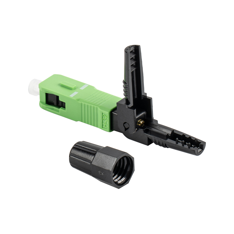 De GSG-01-60 mm-APC verticale glasvezel-snelconnector maakt snelle en gereedschapsloze glasvezelaansluiting op locatie mogelijk. Het elimineren van de noodzaak voor conventionele las- of lijmstappen stroomlijnt de installatieprocedure, waardoor de algehele werkefficiëntie wordt verbeterd.